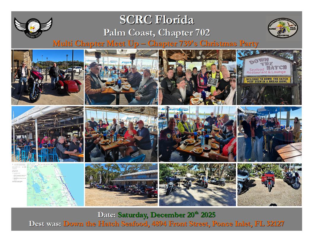 Up Chapter 739's Christmas Party Saturday, December 20, 2025 Dest was: Down the Hatch Seafood Company, 4894 Front Street,Ponce Inlet,FL 32127 |