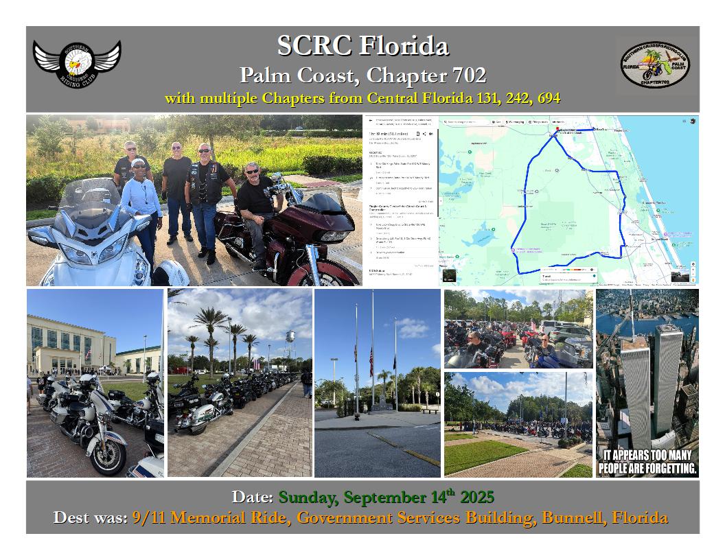 2025 Flagler County - 19th Annual 9/11 Memorial Ride and Ceremony is now in the history books. The turn out was impressive solidifying the fact that "We Will Never Forget". |