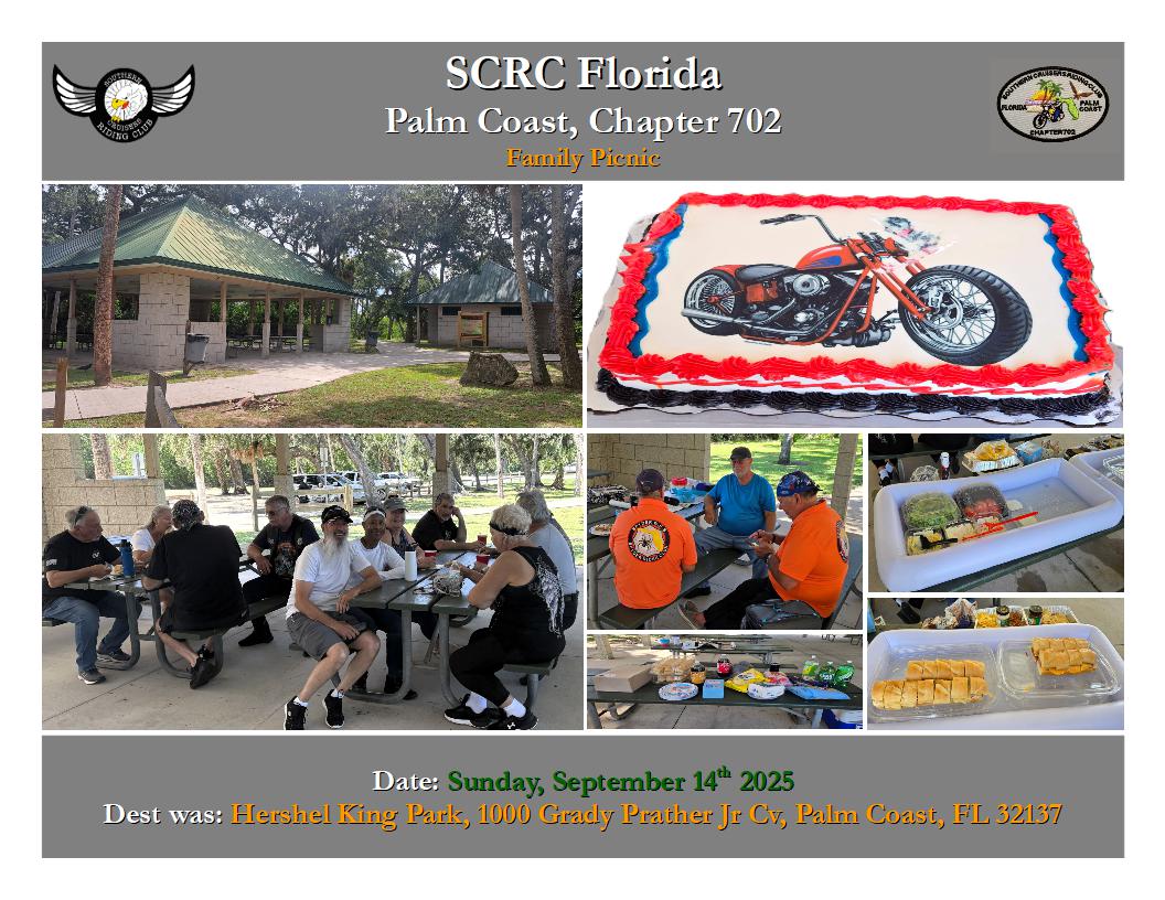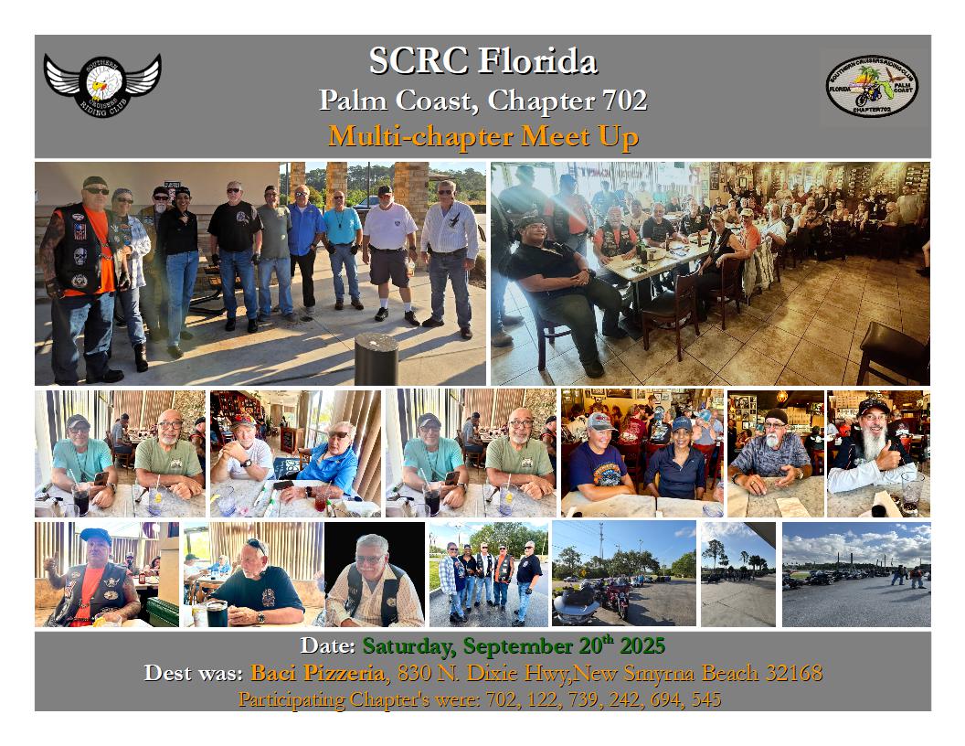 RIDE Multichapter Meetup Saturday, September 20th 2025 Dest Was: Baci Pizzeria, 830 N.Dixie Hwy,New Smyrna Beach 32168 |